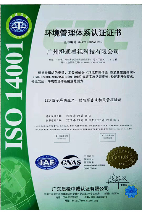 環境管理體系認證證書中文